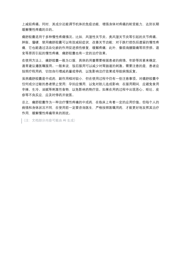 痛舒胶囊在治疗慢性疼痛的科普