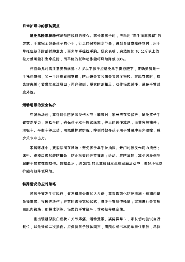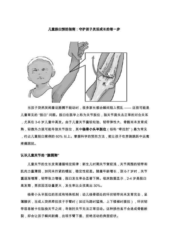 儿童脱臼预防指南:守护孩子灵活成长的每一步