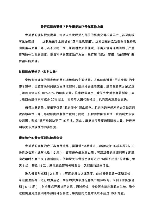 骨折后肌肉萎缩?科学康复治疗帮你置拾力量