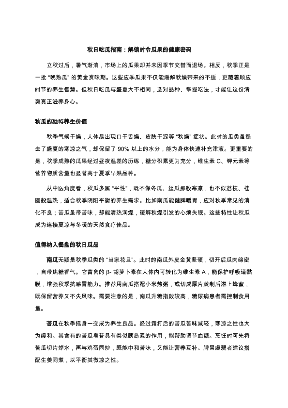 秋日吃瓜指南:解锁时令瓜果的健康密码