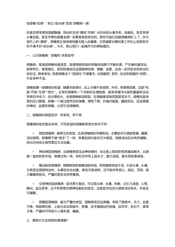 颈椎病:低头族的“隐形杀手”,如何自救?