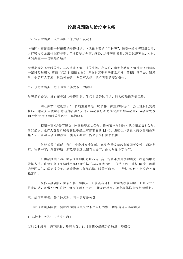 滑膜炎预防与治疗全攻略