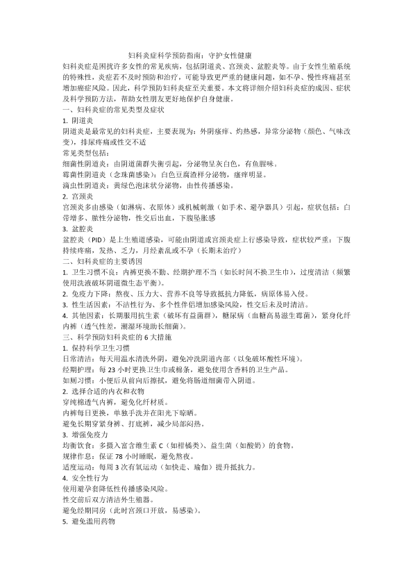 妇科炎症科学预防指南:守护女性健康