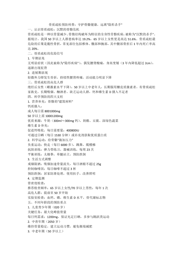骨质疏松预防科普:守护骨骼健康,远离"隐形杀手"
