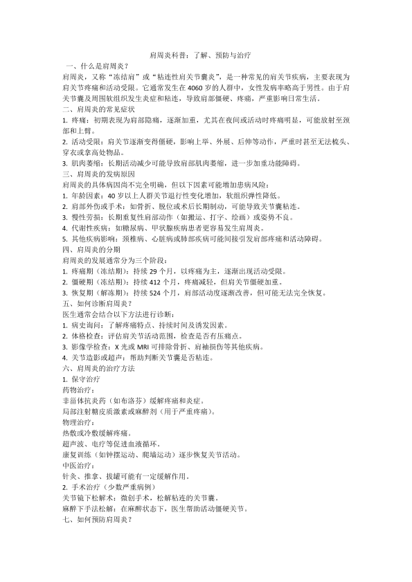 肩周炎科普:了解、预防与治疗