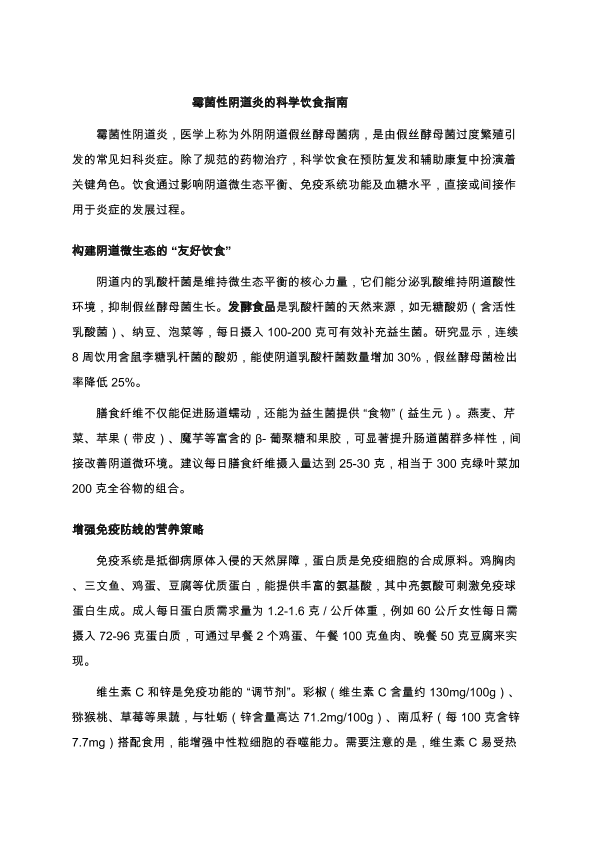 霉菌性阴道炎的科学饮食指南