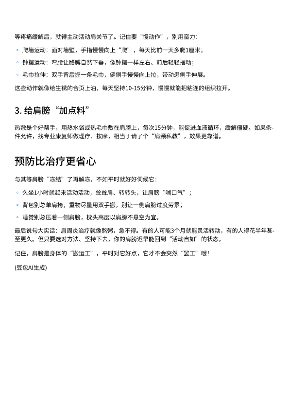 肩周炎的治疗与预防