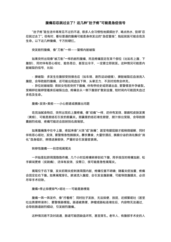 腹痛忍忍就过去了,这几种肚子疼可能是急症信