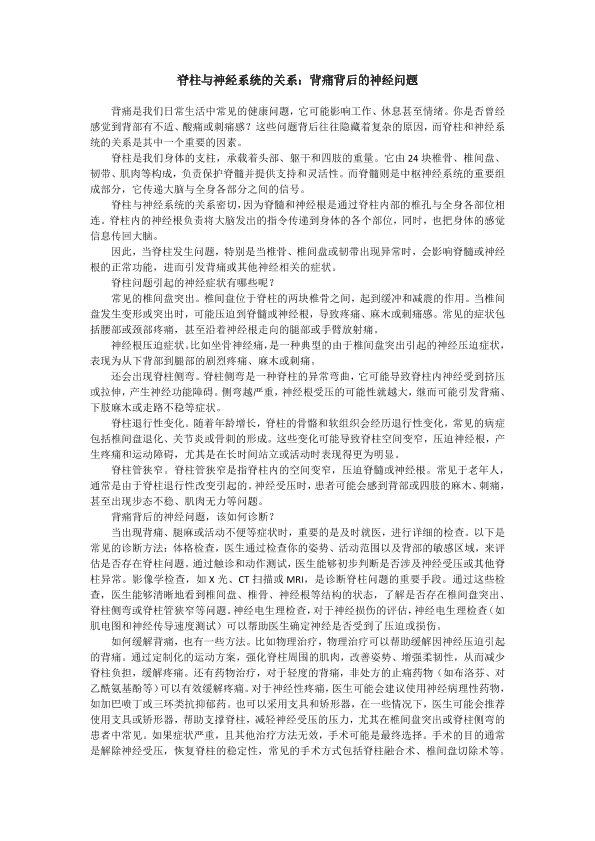 脊柱与神经系统的关系:背痛背后的神经问题