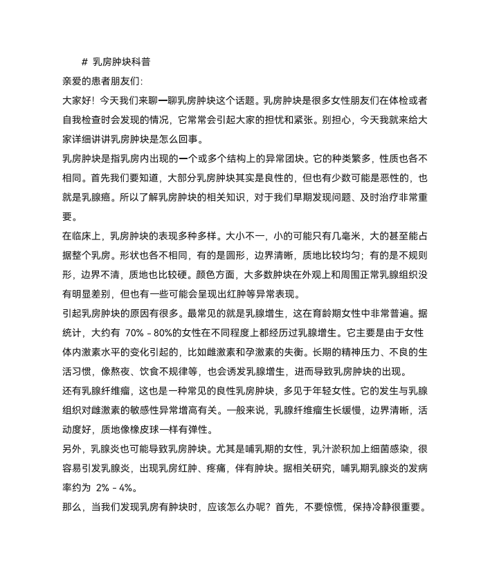 乳房肿块科普