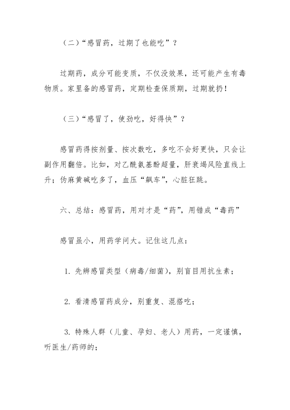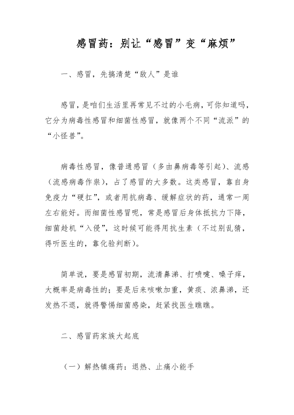 感冒药:别让“感冒”变“麻烦”