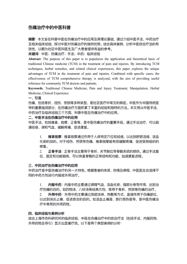 伤痛治疗中的中医科普