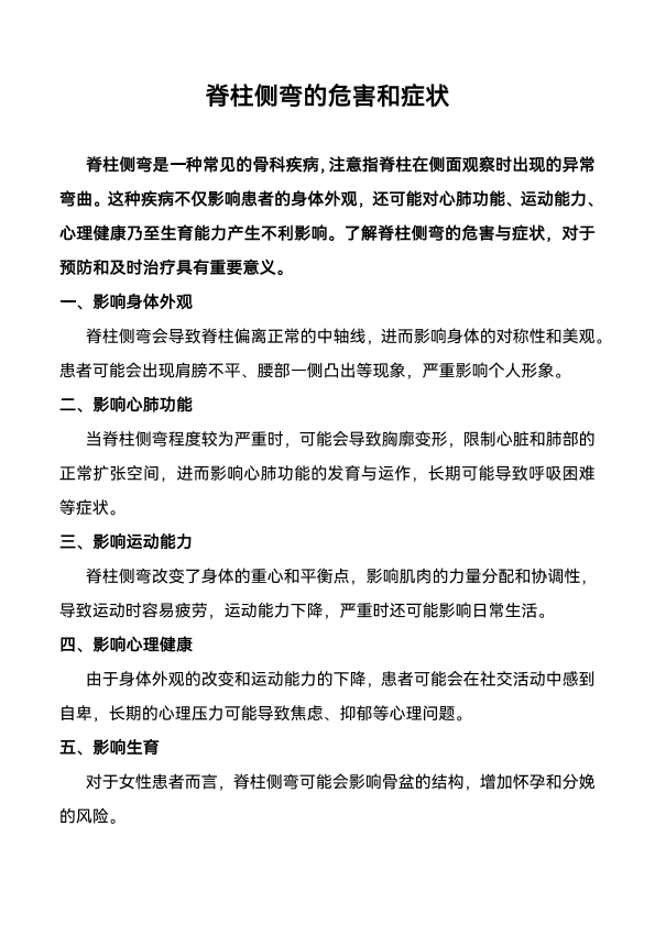 脊柱侧弯的危害与症状