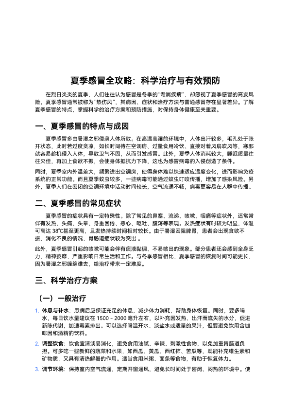 夏季感冒全攻略:科学治疗与有效预防