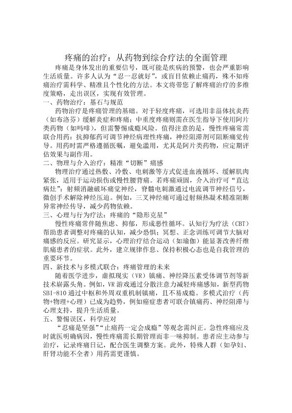疼痛的治疗