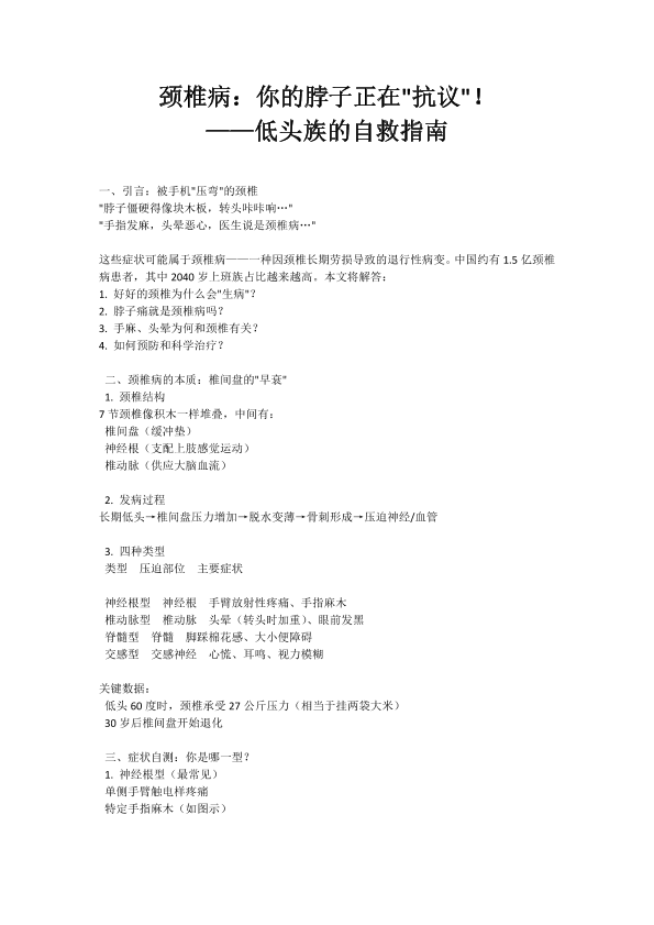 颈椎病:低头族的“隐形杀手”,如何自救?