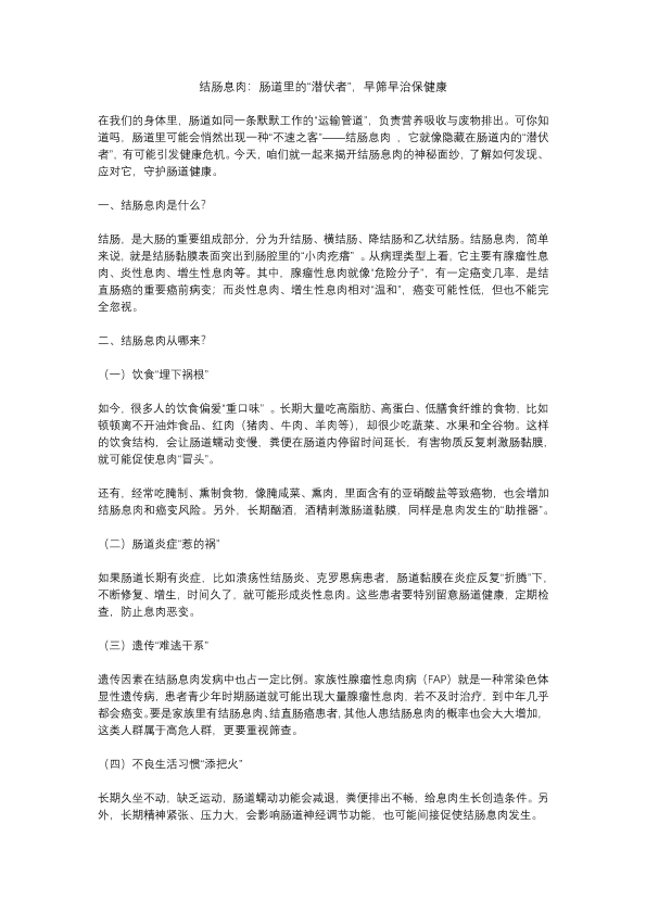 结肠息肉:肠道里的“潜伏者”,早筛早治保健康