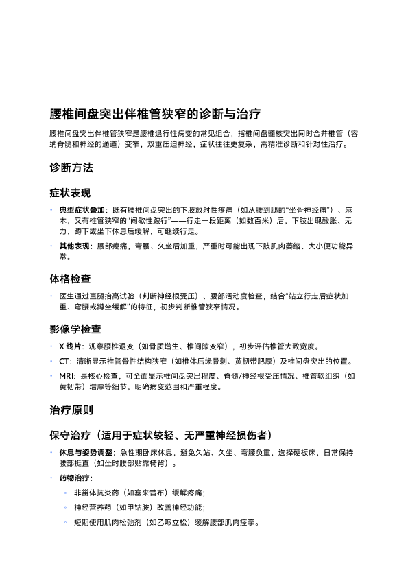 腰椎间盘突出伴椎管狭窄的诊断与治疗