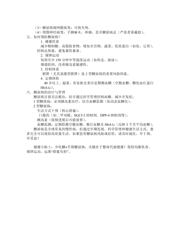 了解、预防与管理糖尿病