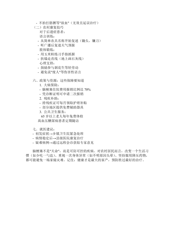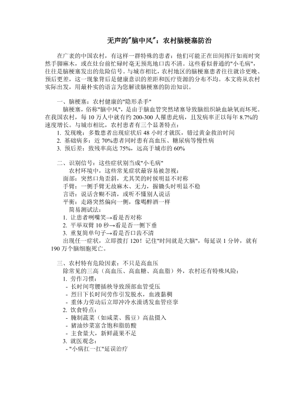无声的脑中风农村脑梗塞防治