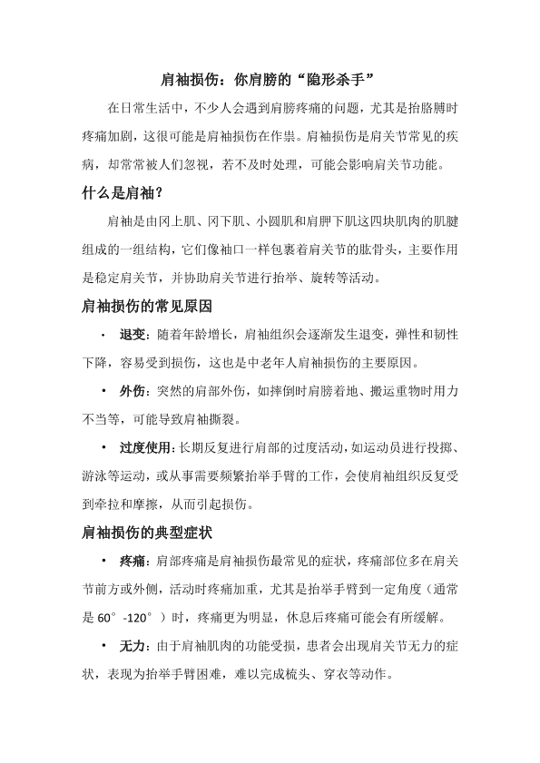 肩袖损伤,翅膀隐形杀手