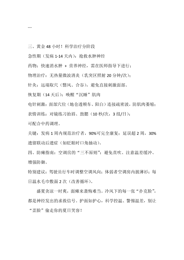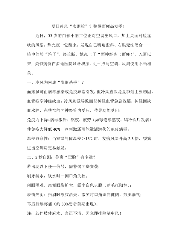 夏日冷风吹歪脸?警惕面瘫高发季