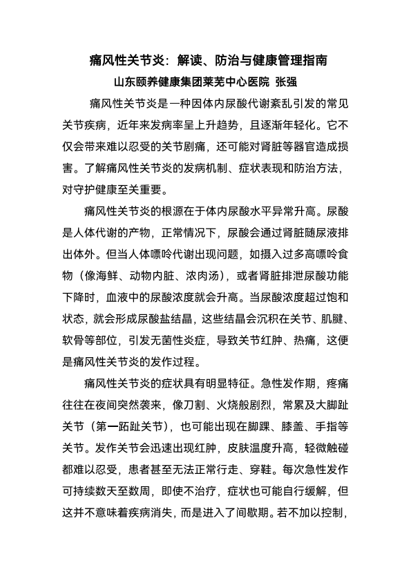 痛风性关节炎解读防治与健康管理指南