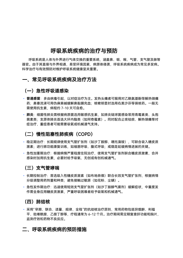 呼吸系统疾病的治疗与预防