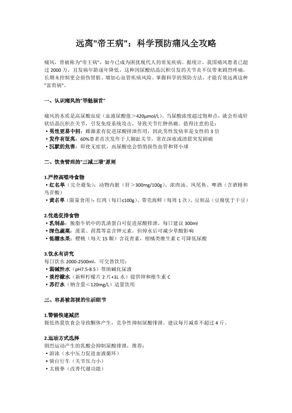 远离"帝王病":科学预防痛风全攻略