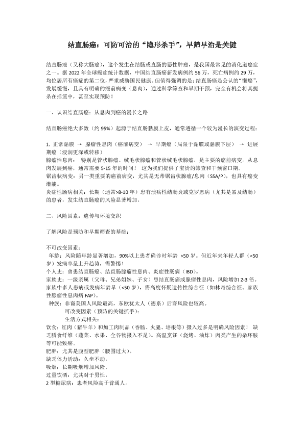 结直肠癌可防可治的隐形杀手,早筛早治是关键