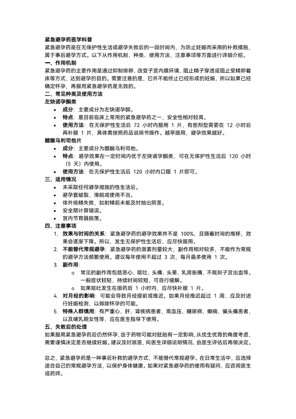 紧急避孕药医学科普