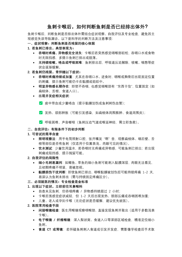 鱼刺卡喉后,如何判断鱼刺是否已经排出体外?