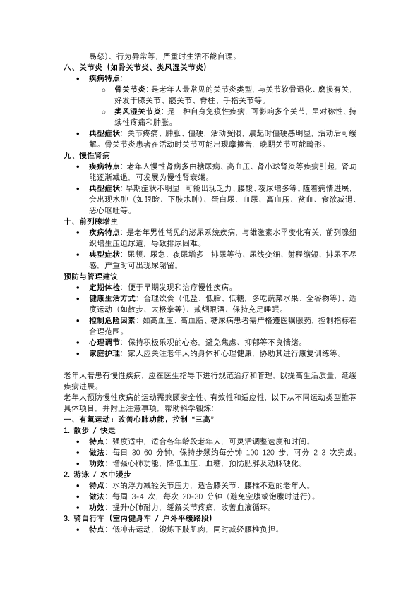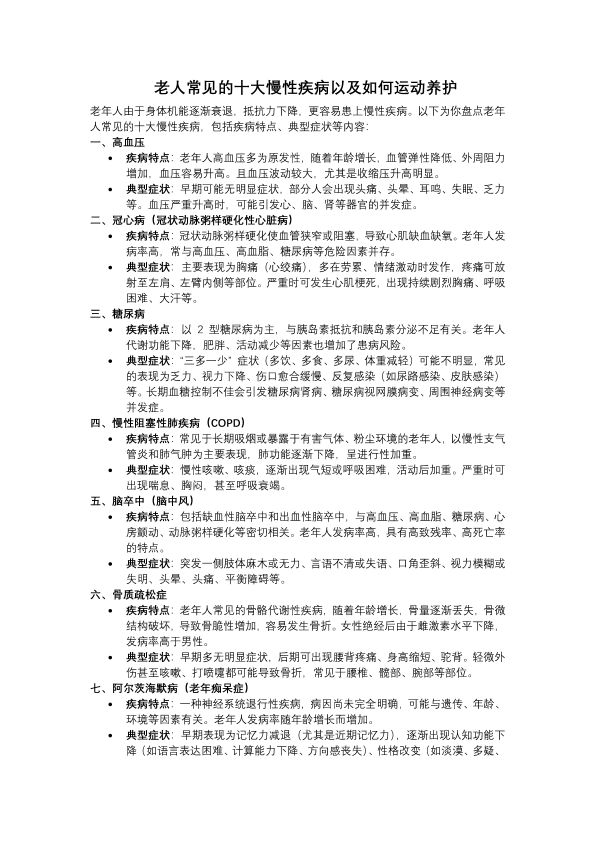 老人常见得十大慢性病以及如何运动养护