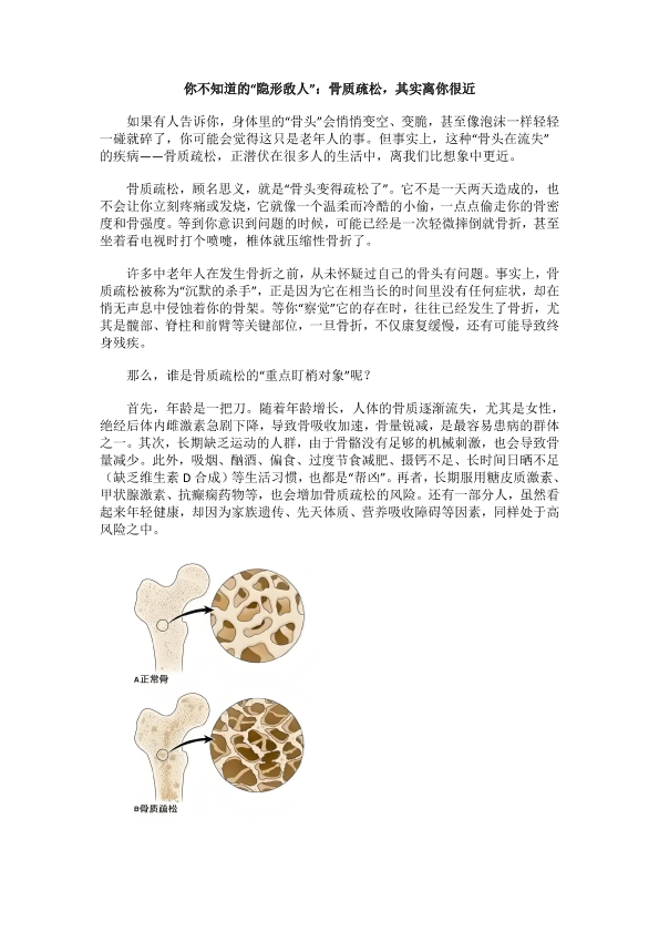 你不知道的“隐形敌人”:骨质疏松,其实离你很近