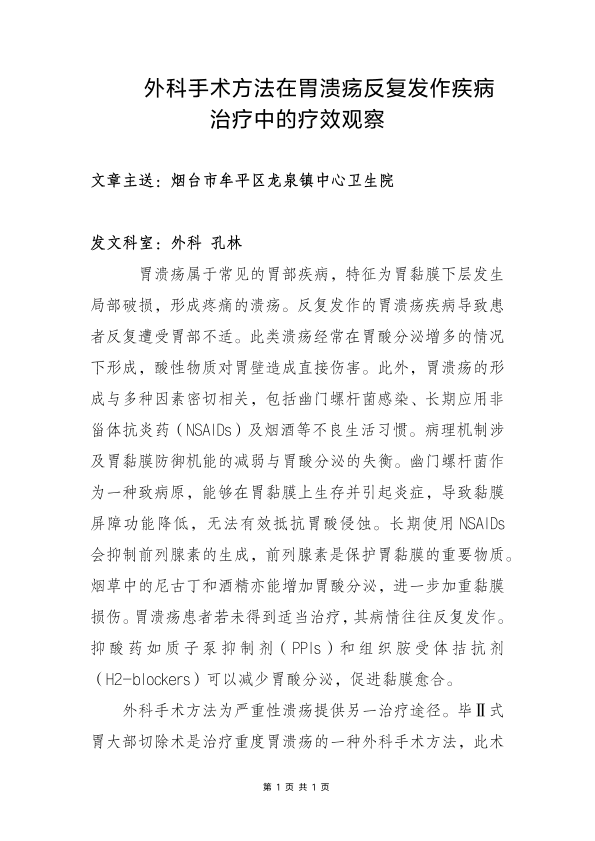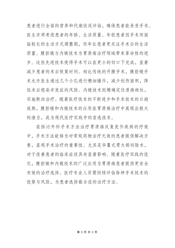 外科手术方法在胃溃疡疾疗治疗中的疗效观察