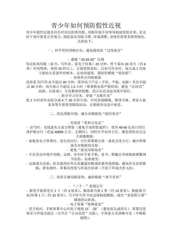 青少年如何预防假性近视