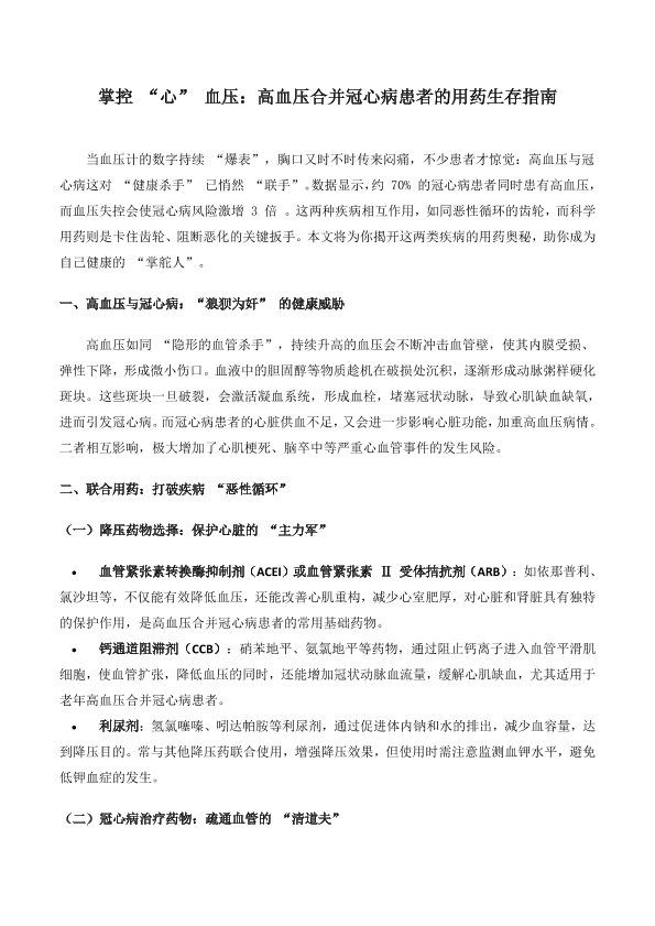 掌控“心”血压:高血压合并冠心病患者的用药生存指南