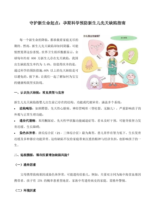 守护生命新起点:孕期科学预防新生儿先天缺陷指南