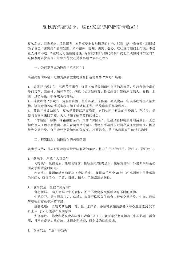 夏秋腹泻高发季,这份家庭防护指南请收好!