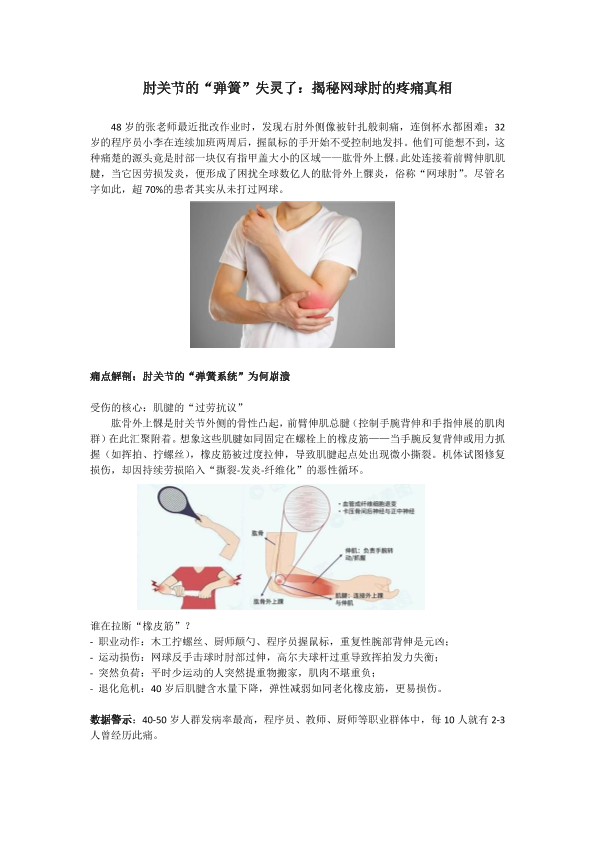 肘关节的“弹簧”失灵了:揭秘网球肘的疼痛真相