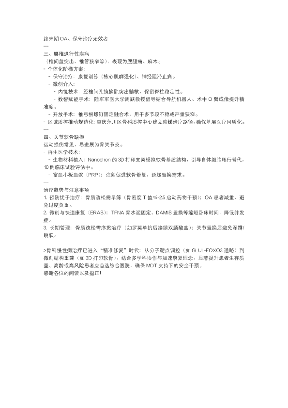 骨科当中常见慢性病以及治疗