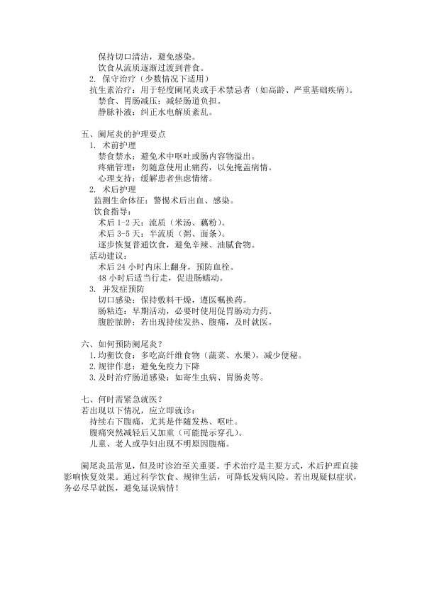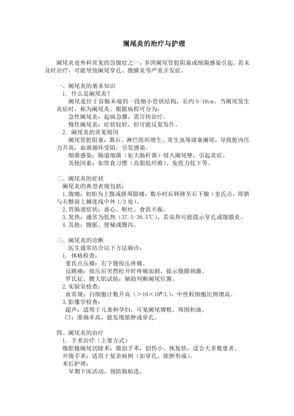 阑尾炎的治疗与护理