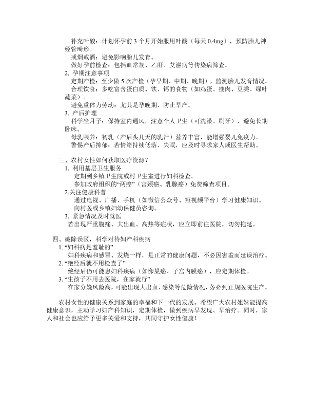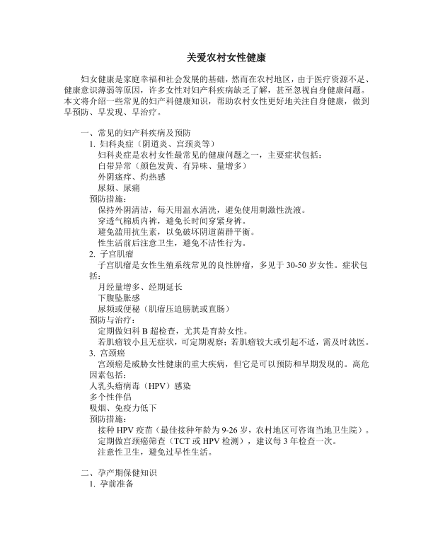 关爱农村女性健康