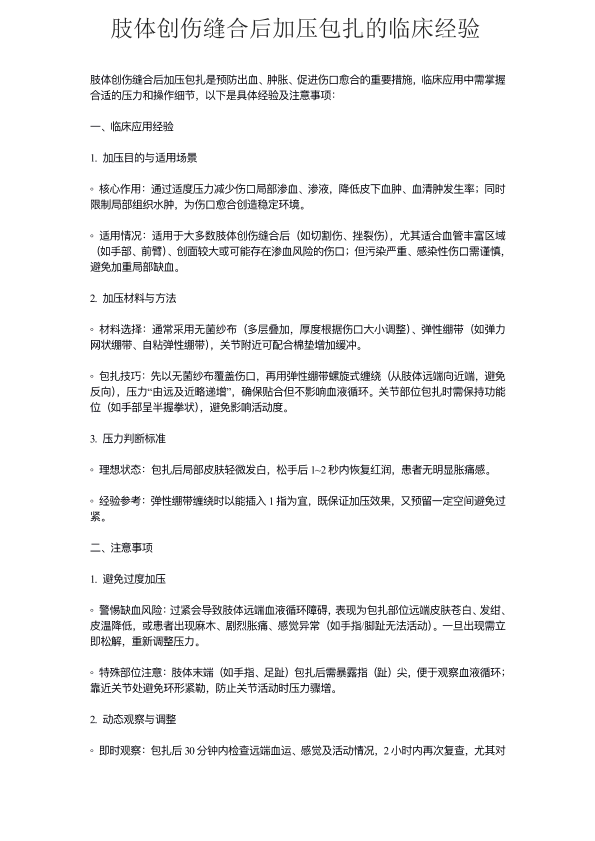 肢体创伤缝合后加压包扎的临床经验