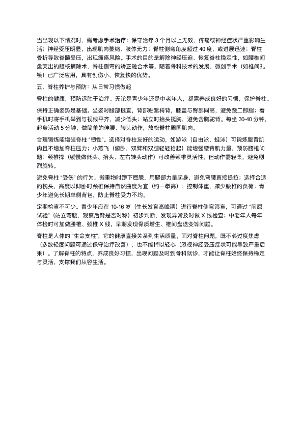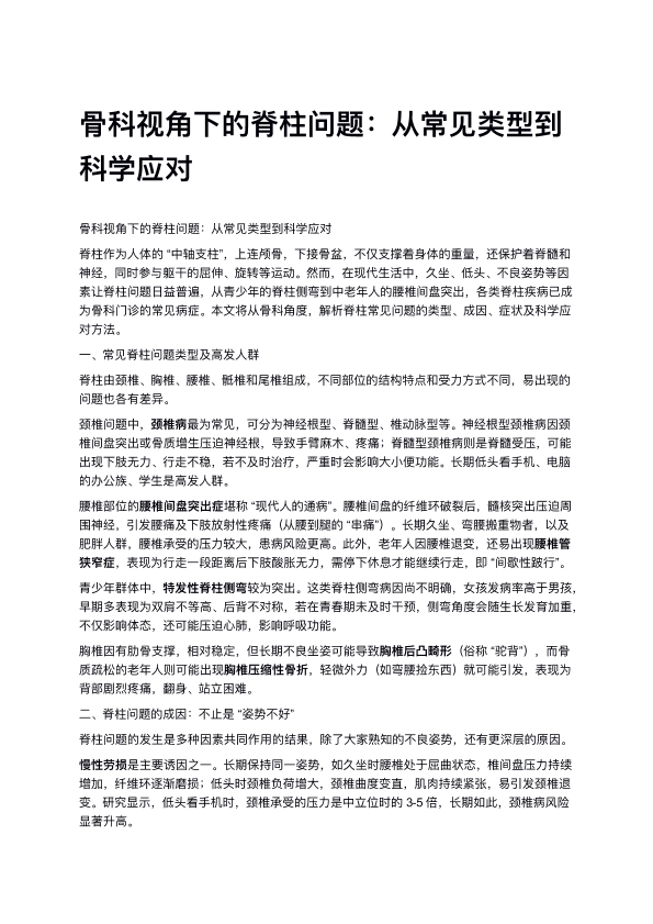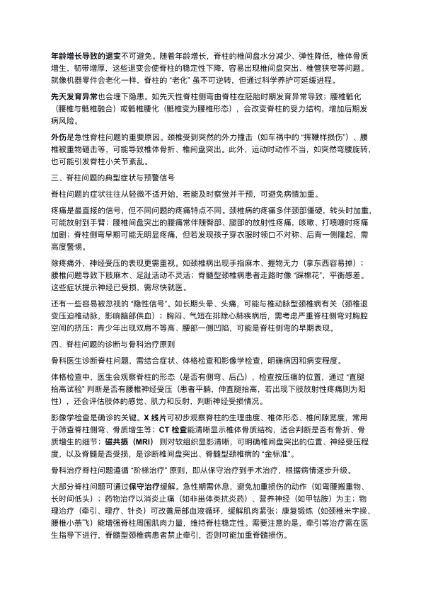 骨科视角下的脊柱问题:从常见类型到科学应对