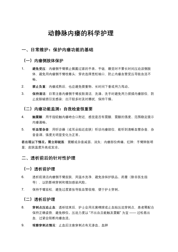 动静脉内瘘护理