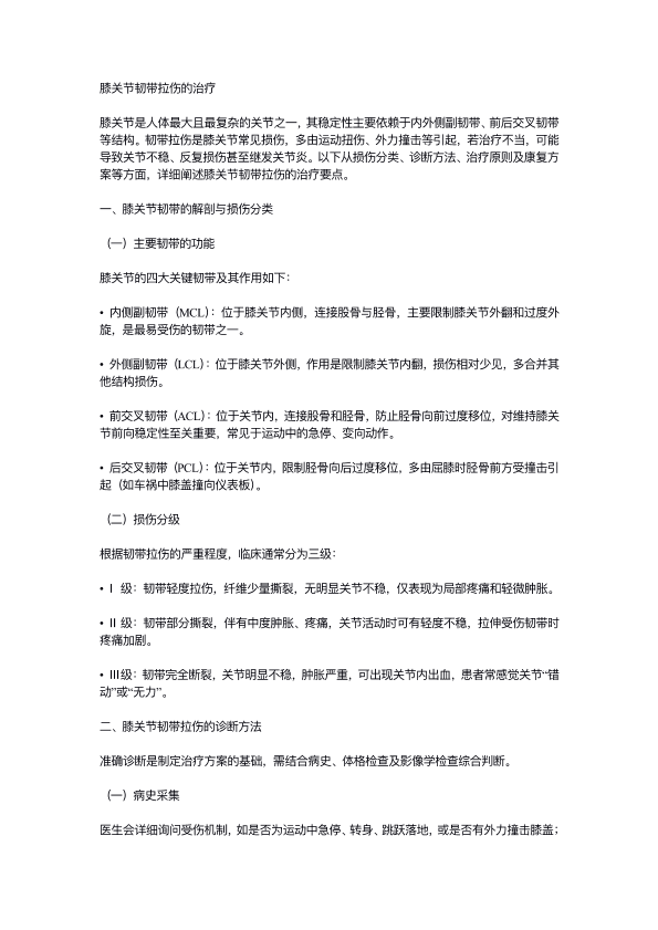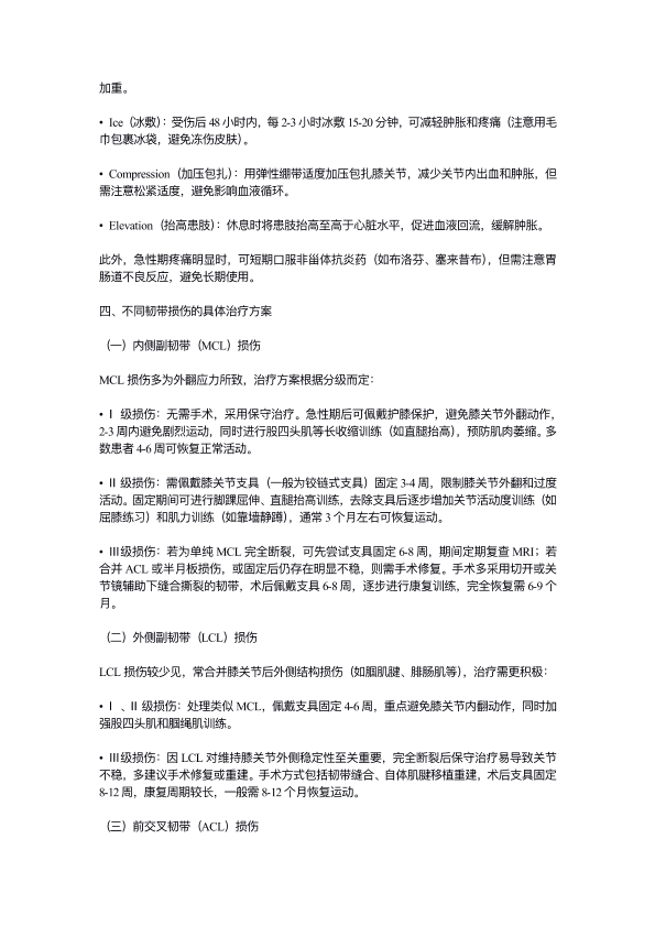 膝关节韧带拉伤的治疗