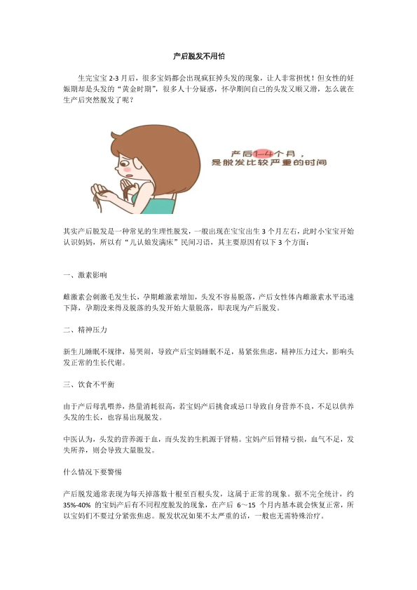 产后脱发不用怕