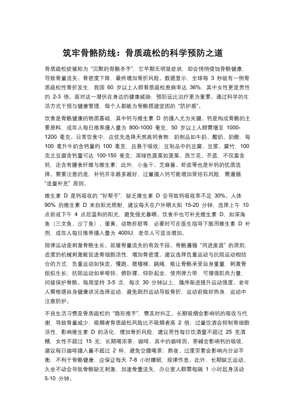筑牢骨骼防线:骨质疏松的科学预防之道
