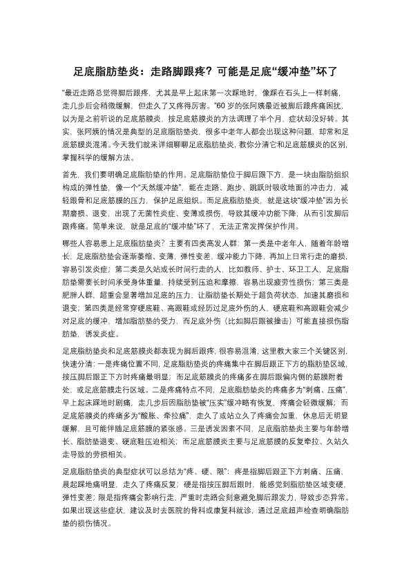 足底脂肪垫炎:走路脚跟疼?可能是足底“缓冲垫”坏了